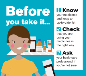 Know Check Ask supports you to be more involved in decisions about medication, encourages you to report issues and concerns about medication and to keep an up-to-date ‘My Medicines List’.